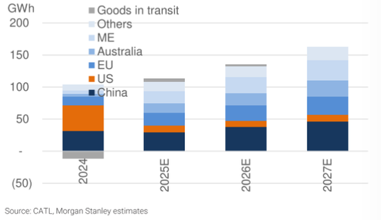 宁德时代2025-2027年的ESS销量预测-21%的复合年增长率